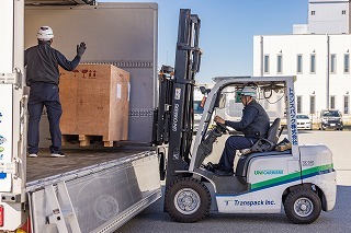 (2)貨物の積み下ろしは、基本的にフォークリフト作業です