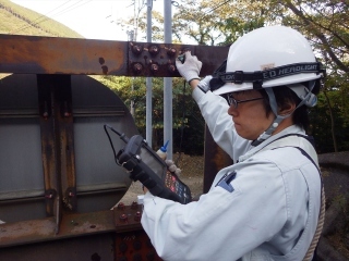 ◆機材を使用して鋼構造物の溶接部や橋梁・道路等の調査点検を行う非破壊検査業務。
